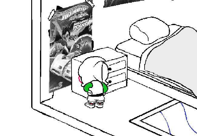 Now that you think about it, one part of this smorgasbord of trinkets and devices in particular had been gnawing at the back of your head ever since you previously got here a little bit ago. Something strangely out of place: that HOT WHEELS POSTER.