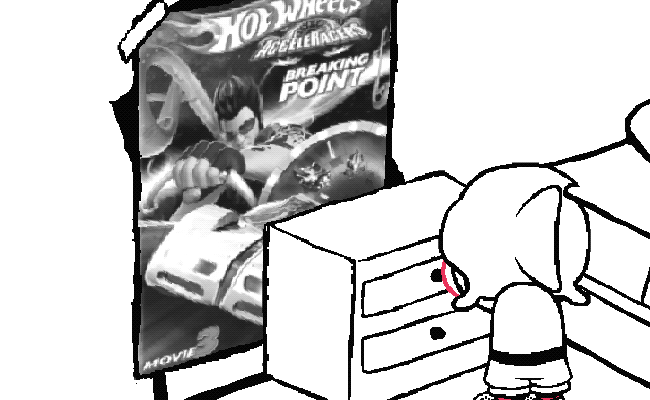 You didn't notice it before, but something is off about this poster. The placement of it is a little irregular, and the way it's been put up on the wall is... shabby? That is quite unlike him.