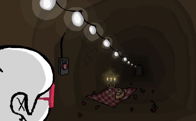 The way is barely lit by hanging lights, dimly casting this chamber in a dusty glow. Although your homes are a mere picket fence apart, this TUNNEL feels like it could go on way longer than it should. Either that, or it's just your ever-active imagination picturing some form of terrible beast lurking down here. Just what kind of schemes were they up to?!