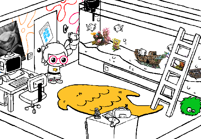 Your name is GUPY. As previously mentioned it is your BIRTHDAY. A wall-to-wall AQUARIUM lights your room. You have a variety of INTERESTS. You have a passion for AQUATIC PARAPHERNALIA. You like to study and keep a variety of MARINE LIFE. You have a fondness for INTERNET LORE, and are an aspiring SPACE CADET. You also like to play GAMES sometimes.