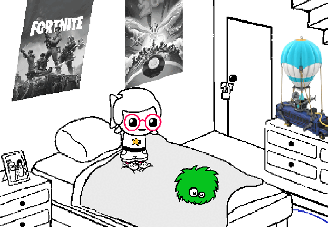 Gupy: Bounce and play with your CHUZZLE on DAD's bed.