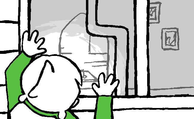 With a clamber, you stick to the wall like an insect and peer into the cloudy glass of the WINDOW. If your suspicions are correct, then perhaps...